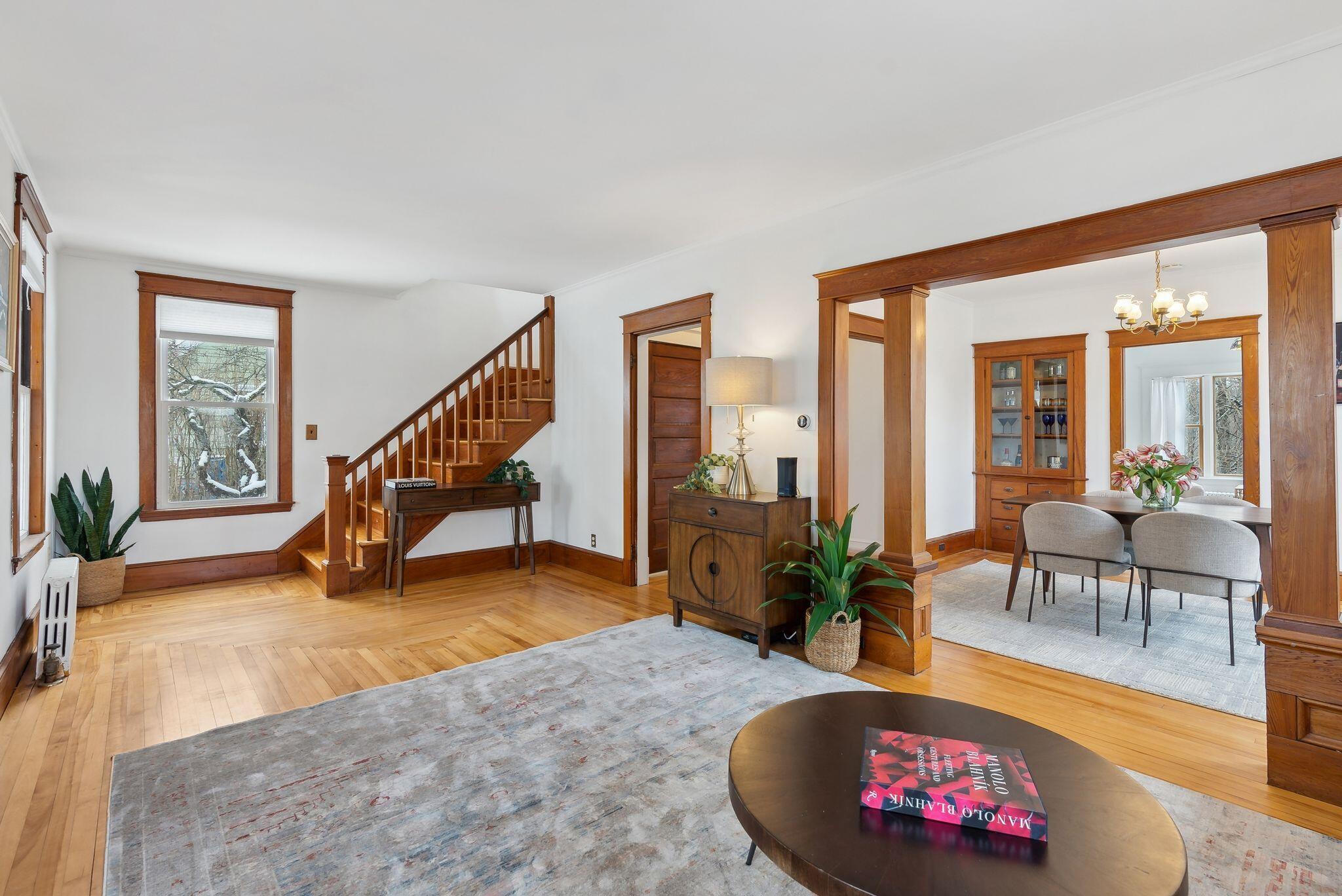 Nestled on a quiet dead-end street in Portland's sought-after Back Cove neighborhood, 32 Rosedale Street is a beautifully maintained bungalow where classic charm and thoughtful updates blend seamlessly. Just moments from Payson Park, Baxter Boulevard, and Portland's vibrant downtown, this home offers both tranquility and accessibility. Upon entry, soaring ceilings and natural light floods the spacious living areas, highlighting the beautifully preserved hardwood floors and elegant wood trim that warmly welcome you home. The first floor boasts a generous living room, a formal dining room perfect for entertaining, a bright and airy breakfast nook, and a refreshed kitchen featuring stainless steel appliances, updated hardware, and new durable LVP flooring. A full bathroom with new flooring and an inviting three-season porch complete the main level, offering a cozy sanctuary in any season. Upstairs, three comfortable bedrooms share a full bath, creating a peaceful private retreat. Need more space? The oversized detached garage, equipped with electricity, offers abundant storage and endless possibilities--whether as a workshop, studio, or additional flex space. Additional features include a large unfinished basement, a new roof (2018/2019), a professionally spray-foamed attic for enhanced energy efficiency, a new hybrid water heater, sewer line upgrades, and a spacious backyard with plenty of room for gardening or entertaining. Conveniently located within minutes of local schools, Fall Brook, Canco Woods, Portland International Jetport, I-95/I-295, and the finest amenities Portland has to offer! Make it yours today!